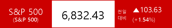.S&P 500, 103.63포인트(+1.54%) 상승한 6,832.43