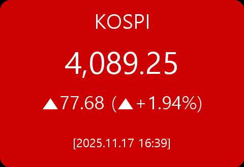 .코스피, 77.68포인트(+1.94%) 상승한 4,089.25