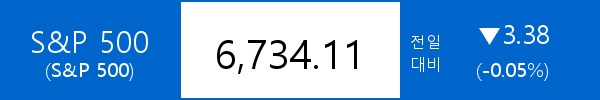 .S&P 500, -3.38포인트(-0.05%) 하락한 6,734.11