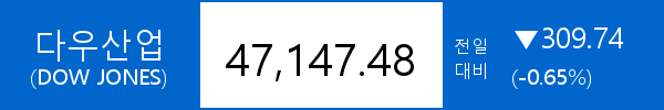 .다우존스, -309.74포인트(-0.65%) 하락한 47,147.48
