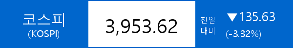 .코스피, 135.63포인트(-3.32%) 하락한 3,953.62
