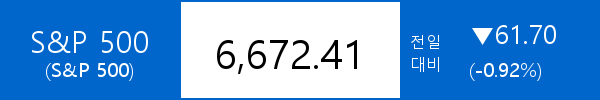 .S&P 500, -61.70포인트(-0.92%) 하락한 6,672.41