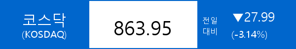 • 코스닥, 27.99포인트(-3.14%) 하락한 863.95
