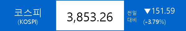 • 코스피, 151.59포인트(-3.79%) 하락한 3,853.26