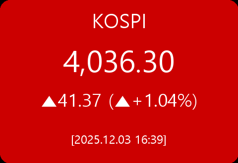 .코스피, 41.37포인트(+1.04%) 상승한 4,036.30