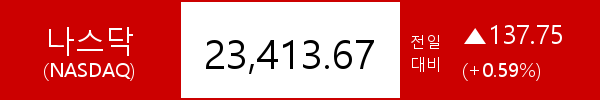 .나스닥 종합, 137.75포인트(+0.59%) 상승한 23,413.67