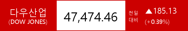 .다우존스, 185.13포인트(+0.39%) 상승한 47,474.46