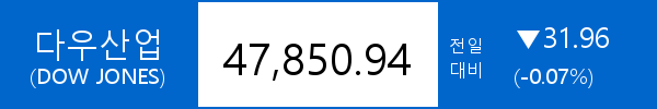 .다우존스, -31.96포인트(-0.07%) 하락한 47,850.94