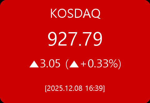 • 코스닥, 3.05포인트(+0.33%) 상승한 927.79