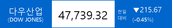 .다우존스, -215.67포인트(-0.45%) 하락한 47,739.32