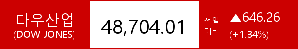 .다우존스, 646.26포인트(+1.34%) 상승한 48,704.01