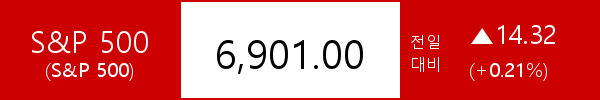 .S&P 500, 14.32포인트(+0.21%) 상승한 6,901.00