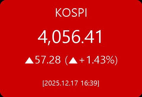 • 코스피, 57.28포인트(+1.43%) 상승한 4,056.41