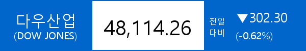 • 다우존스, -302.30포인트(-0.62%) 하락한 48,114.26
