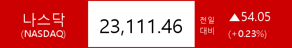 • 나스닥 종합, 54.05포인트(+0.23%) 상승한 23,111.46