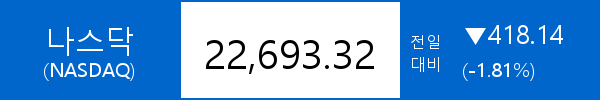 • 나스닥 종합, -418.14포인트(-1.81%) 하락한 22,693.32