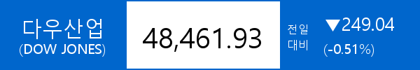 .다우존스, -249.04포인트(-0.51%) 하락한 48,461.93