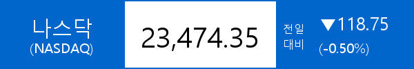.나스닥 종합, -118.75포인트(-0.50%) 하락한 23,474.35