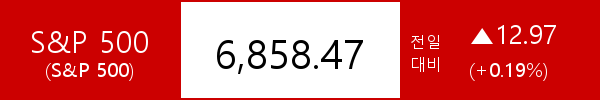 .S&P 500, 12.97포인트(+0.19%) 상승한 6,858.47