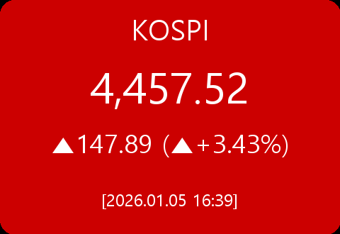 • 코스피, 147.89포인트(+3.43%) 상승한 4,457.52