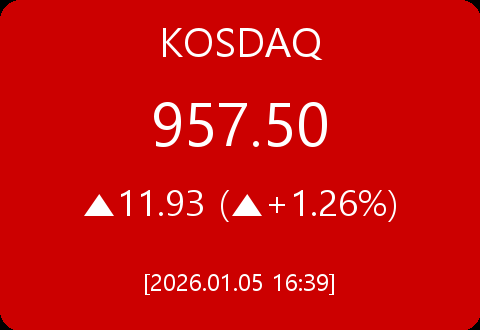 • 코스닥, 11.93포인트(+1.26%) 상승한 957.50