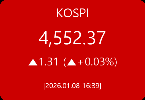 • 코스피, 1.31포인트(+0.03%) 상승한 4,552.37