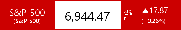 .S&P 500, 17.87포인트(+0.26%) 상승한 6,944.47