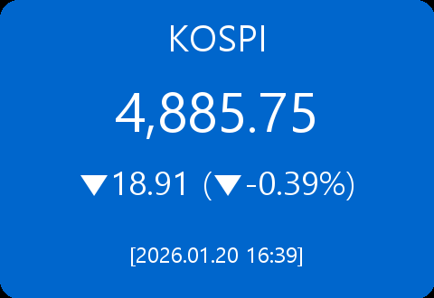 • 코스피, 18.91포인트(-0.39%) 하락한 4,885.75