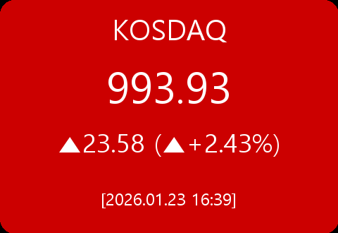 • 코스닥, 23.58포인트(+2.43%) 상승한 993.93