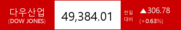 .다우존스, 306.78포인트(+0.63%) 상승한 49,384.01