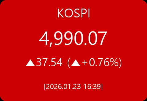 • 코스피, 37.54포인트(+0.76%) 상승한 4,990.07