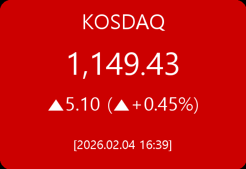 • 코스닥, 5.10포인트(+0.45%) 상승한 1,149.43
