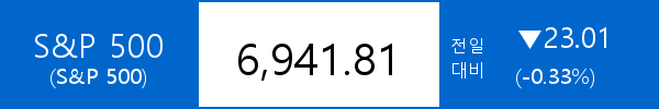 .S&P 500, -23.01포인트(-0.33%) 하락한 6,941.81
