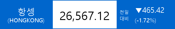 .2026.02.13 홍콩, 항셍, -465.42포인트(-1.72%) 하락한 26,567.12
