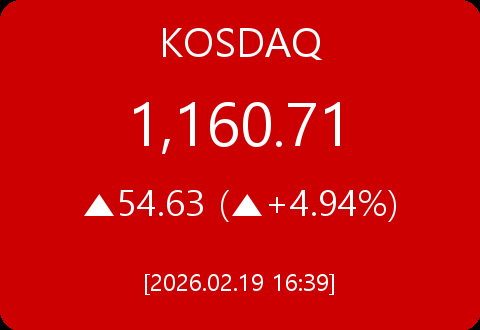• 코스닥, 54.63포인트(+4.94%) 상승한 1,160.71