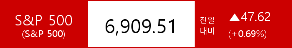 .S&P 500, 47.62포인트(+0.69%) 상승한 6,909.51