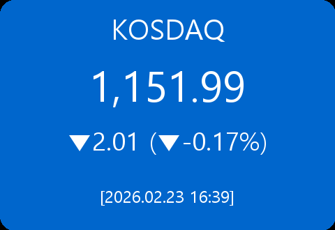 • 코스닥, 2.01포인트(-0.17%) 하락한 1,151.99