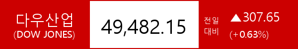 .다우존스, 307.65포인트(+0.63%) 상승한 49,482.15