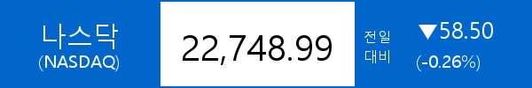 .나스닥 종합, -58.50포인트(-0.26%) 하락한 22,748.99