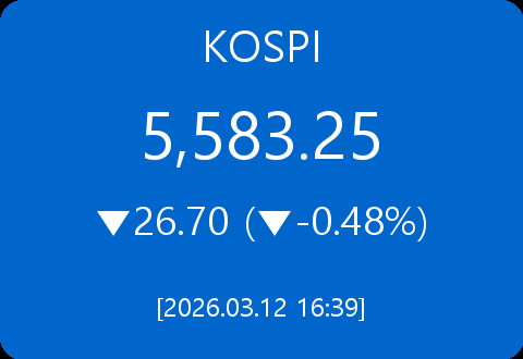 • 코스피, 26.70포인트(-0.48%) 하락한 5,583.25