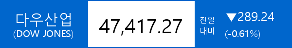 .다우존스, -289.24포인트(-0.61%) 하락한 47,417.27