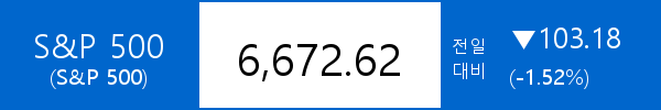 .S&P 500, -103.18포인트(-1.52%) 하락한 6,672.62