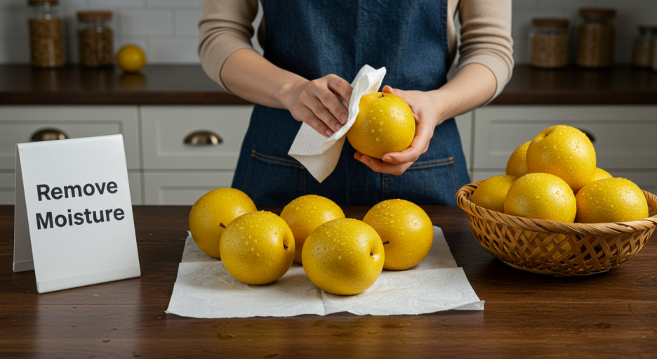물에 씻은 배는 완전히 물기를 제거한 후 보관해야 합니다.
