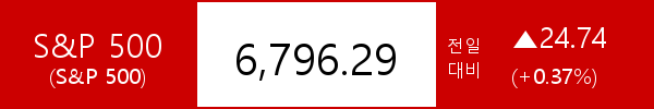 .S&P 500, 24.74포인트(+0.37%) 상승한 6,796.29
