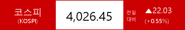.코스피, 22.03포인트(+0.55%) 상승한 4,026.45
